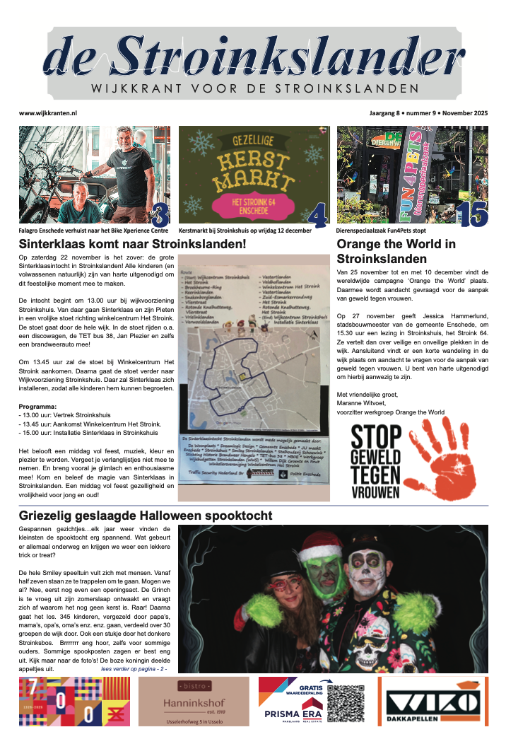 Om de wijkkrant (uitgave november 2025) digitaal te lezen, klik op de afbeelding van "de Stroinkslander" hieronder.